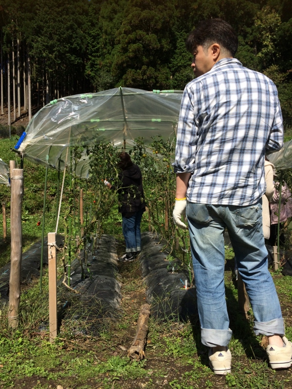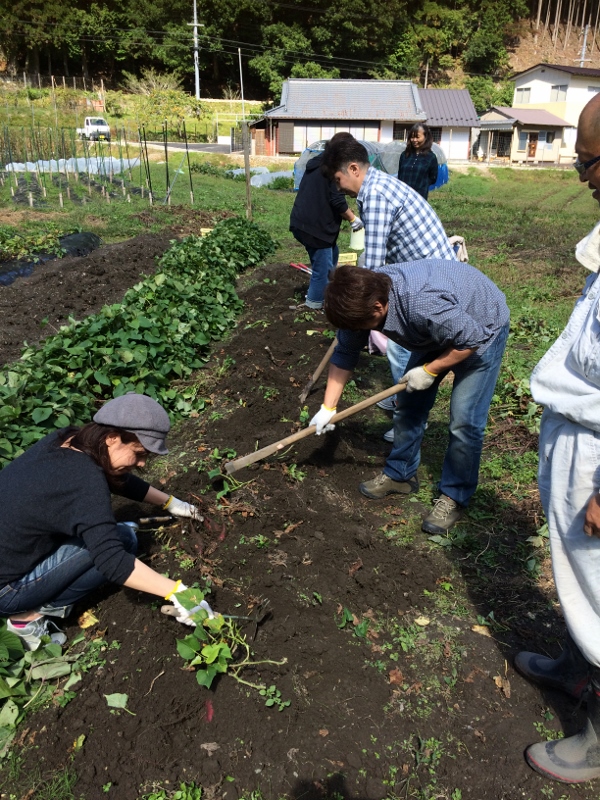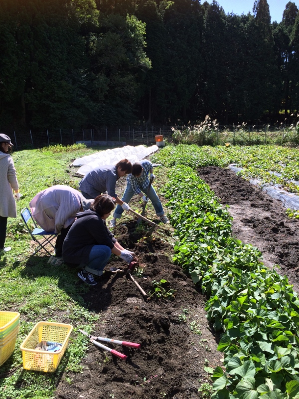 収穫体験を終え、農家さんの土地ですぐに焼き始めました。